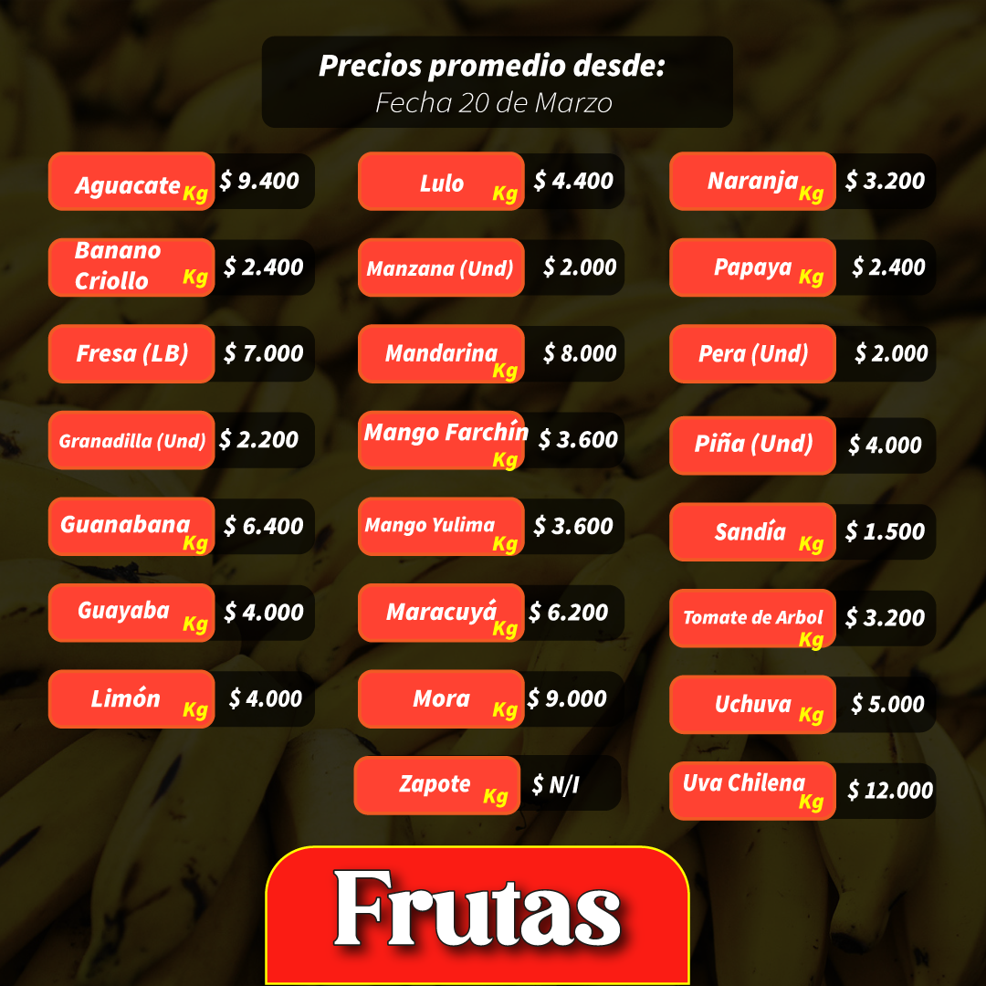 Buscar Hierbas, Naturista, Chócolo, Aguacate ,Borojó, hojas de plátano y bijao Frutas, Verduras, Legumbres, Frutos secos y Especias Carnes y pescados Abarrotes, Desechables, Licor, gaseosa, cerveza, Cigarrillos, Confitería. Mascotas, cuidos, medicamentos, accesorios. Ferretería, Herramientas, sonido, Radios, Telefonía, Carbón y Reparaciones Salsamentarias, Quesos, pollo, Huevos, Carnes frías, Harinas, Arepas, Químicos para alimentos. Dotaciones, Ropa Nueva y Usada, Calzado, Tenis, Variedades, Hogar, Perfumería Restaurantes, cafeterías, panadería, Jugos, Helados Financieros, Salud, Tramites, Viajes, Farmacia y Papelería + Comercializadora Fresas del Oriente 2 Local: 096-099 Sector: 02 Comercializamos: Agraz, arándano, mortiño, uchuva, tamarindo, borojó, algarroba en polvo. Categoría(s): Frutas, Verduras, Legumbres, Frutos secos y Especias + DISFRUTAS N.S. Local: 522 Sector: 11 Categoría(s): Frutas, Verduras, Legumbres, Frutos secos y Especias + LA SAGRADA FAMILIA Local: 380 Sector: 11 Comercializamos: FRUTAS Categoría(s): Frutas, Verduras, Legumbres, Frutos secos y Especias + COMSAB Cooperativa San Bartolo Local: 268 Sector: 11 Comercializamos: Plátanos, Bananos Categoría(s): Frutas, Verduras, Legumbres, Frutos secos y Especias + SEBASTIAN Local: 301 Sector: 11 Categoría(s): Frutas, Verduras, Legumbres, Frutos secos y Especias + DISFRUTAS YURLEY Local: 655 (Mayoristas Medios) Sector: 16 Comercializamos: Frutas, Frutas exóticas Categoría(s): Frutas, Verduras, Legumbres, Frutos secos y Especias + Donde Dairo Local: M 068 Sector: 2 Comercializamos: Legumbre Categoría(s): Frutas, Verduras, Legumbres, Frutos secos y Especias + Papas Didier Local: M 130, 133, 194, 254 Sector: 6 Comercializamos: Papa Categoría(s): Frutas, Verduras, Legumbres, Frutos secos y Especias + Distrifrutas los brujos Sector: 16 Mayoristas Medios Comercializamos: Mango Categoría(s): Frutas, Verduras, Legumbres, Frutos secos y Especias + Ramón Eduardo Zapata Local: 540 Sector: 10 Comercializamos: Mangos, mago Tommy, filipino, Mango de Azucar Categoría(s): Frutas, Verduras, Legumbres, Frutos secos y Especias + LA MORALEJA Local: 506 -507 Sector: 10 Comercializamos: Mangos, Mango tommy, mango filipino, mango de azúcar Categoría(s): Frutas, Verduras, Legumbres, Frutos secos y Especias + MANGOS Y FRUTAS NANO Local: 539 Sector: 10 Comercializamos: MANGOS, MANGO TOMMY, FILIPINO, MANFO DE AZUCAR Categoría(s): Frutas, Verduras, Legumbres, Frutos secos y Especias + DONDE LONDOÑO Sector: 16 Comercializamos: MANGO, MANGO TOMMY, MANGO FILIPINO Categoría(s): Frutas, Verduras, Legumbres, Frutos secos y Especias 123